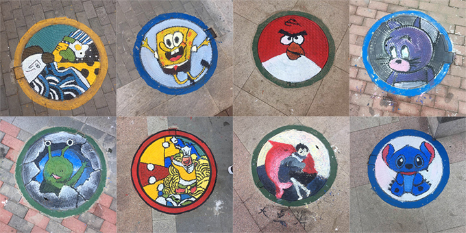 通过学生们的涂鸦创作,小区内呈现《山气日夕佳,飞鸟相与还》《井底之蛙》《龙猫带你回到梦幻的童年世界》等19幅色彩斑斓的井盖艺术作品。