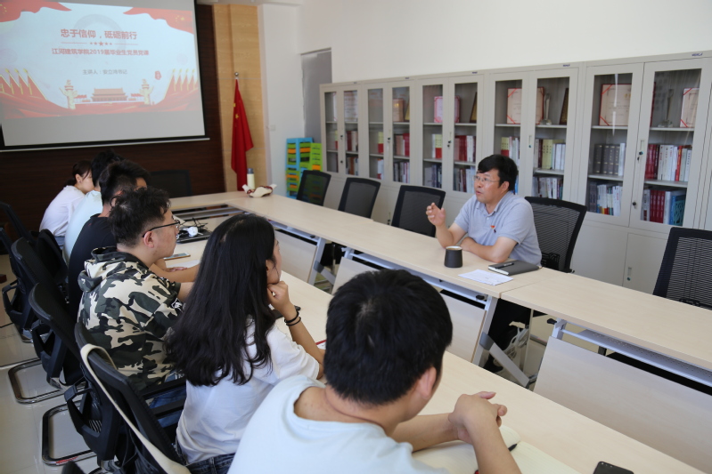 6月21日上午,学院党委在建筑学馆A409举办毕业生党员最后一次党课,党委书记安立鸿以《忠于信仰,砥砺前行》为主题为全体毕业生党员授课。