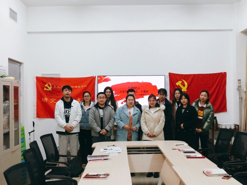 11月7日下午,硕士生党支部在建筑学馆A409开展立德树人“大学习,大讨论,大落实”主题党日活动,支部书记马芳芳主持会议。