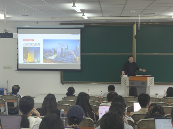 黄勇以《建筑创作的文化自信》为题,以介绍“奇奇怪怪”的建筑为开篇,围绕“学习建筑的那些事儿”对技术与艺术的结合、理性与情感的交织和创造与个性的彰显等建筑学特征以及建筑师的四要素、建筑师的培养、建筑师的沿革等建筑师的素质和中国古建的特点、西方建筑的发展、现代建筑的多元等历史中的建筑三个方面进行了深入的讲解与分析,使在场师生了解到建筑中彰显的文化自信。
