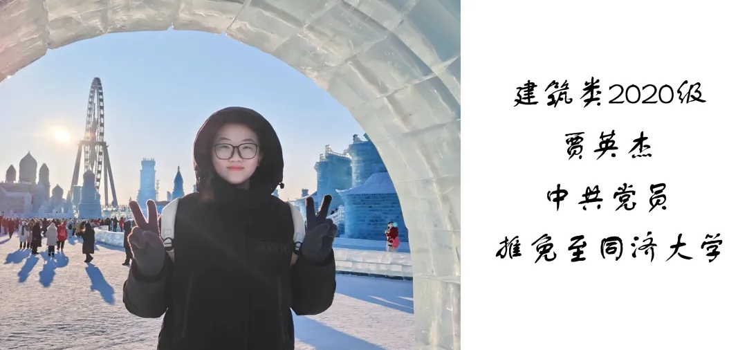 “实践力行,志在奉献”。曾参与“中日联合设计工作坊”等国际交流项目,用行动诠释了青春的意义,不断拓宽自己的能力边界,用努力和坚持书写属于自己的精彩篇章。未来将继续在建筑设计及其理论领域深造,为城市发展贡献自己的力量。
