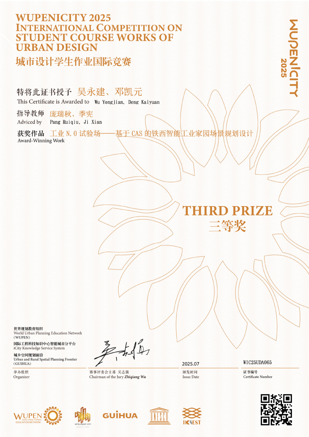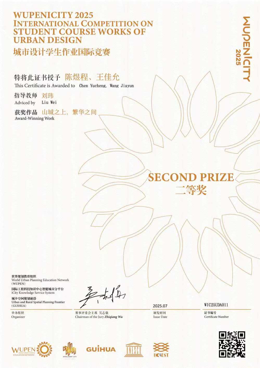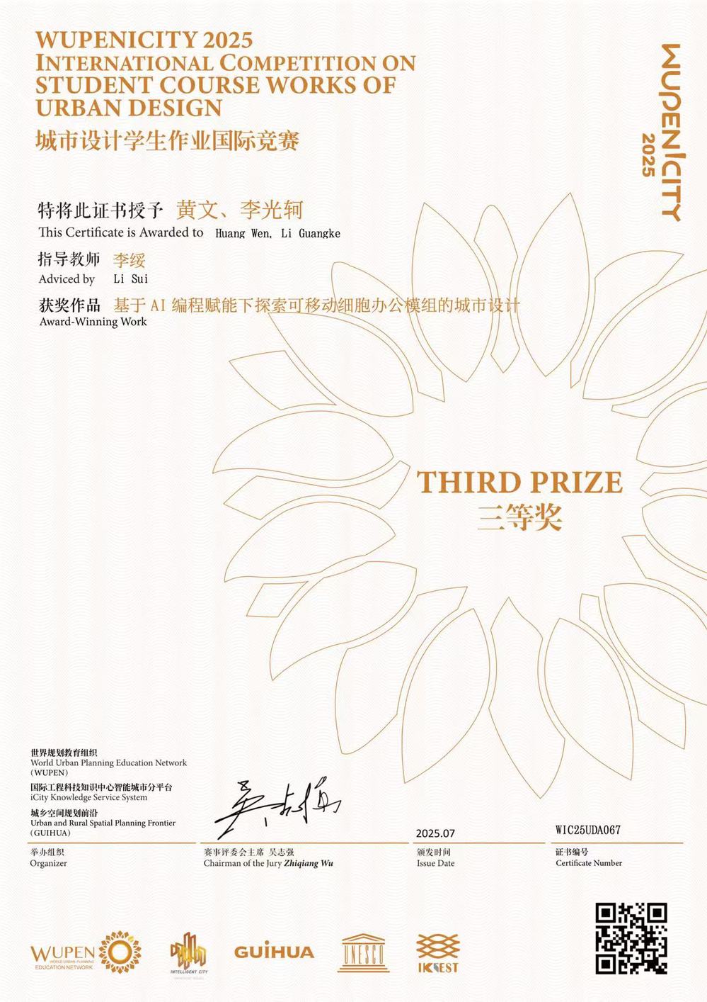 2025 WUPENiCity学生作业国际竞赛奖项于今年7月公布。近日,该竞赛的各类获奖证书由赛事主办方陆续发放。